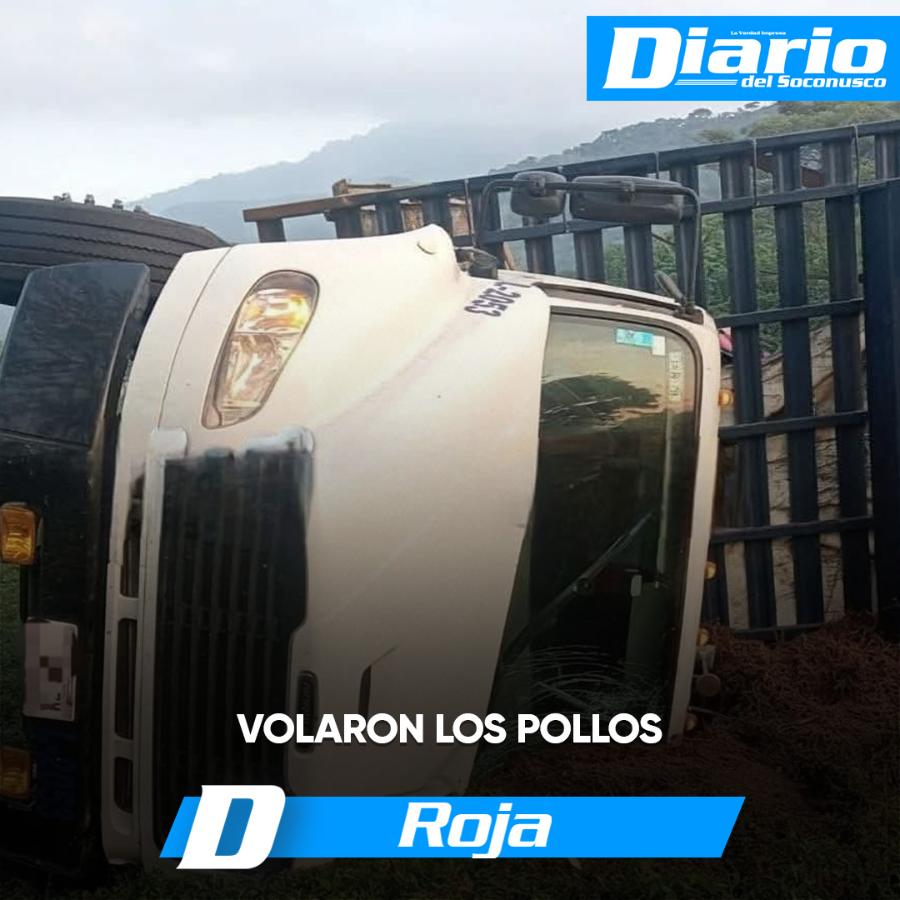 Un camión Freightliner de color blanco, tipo plataforma y cargado con rejas de pollos, sufrió una aparatosa volcadura sobre el kilómetro 172+800, de la carretera Pijijiapan–Mapastepec.