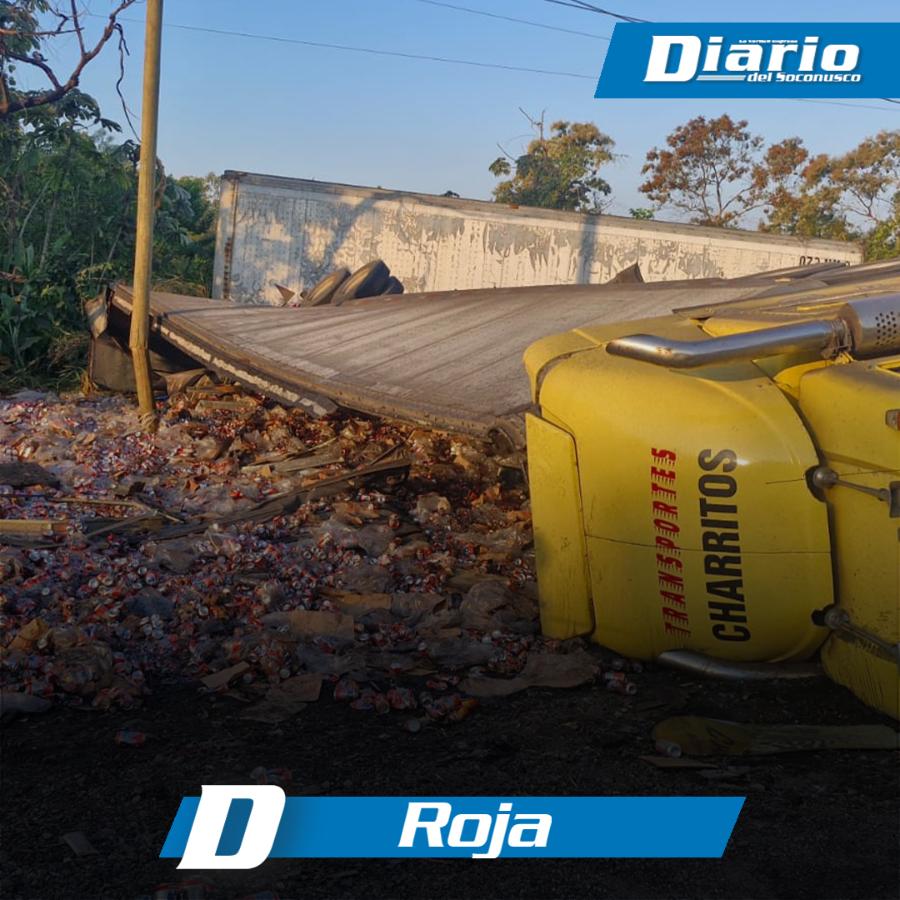 La unidad, de color amarillo, llevaba doble remolque con placas del Servicio Público Federal (SPF) y provenía del norte del país con destino a Tapachula. Presuntamente, el exceso de velocidad provocó que el operador perdiera el control del volante, saliera de la carpeta asfáltica y terminara volcado.